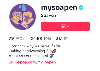 由于创始人本身对于内容营销方面并没有过多专业的知识储备,因此,Soapen 在 TikTok 上发布的视频大多以实拍为主,没有过多的修饰,这些颇具原生感的内容在 TikTok 经过持续传播后,也带动着品牌知名度不断提升。目前 Soapen 在 TikTok 上的账号拥有超 2 万的粉丝量和 300 万的点赞数,视频最高播放量达到了 210 万。