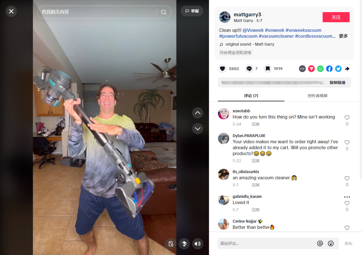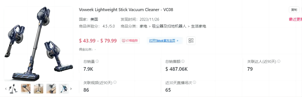 在TikTok上,选品是成功的第一步。“Voweek无绳吸尘器”之所以能够脱颖而出,主要归功于其方便性和实用性,适合家庭清洁、汽车打扫等多个场景。