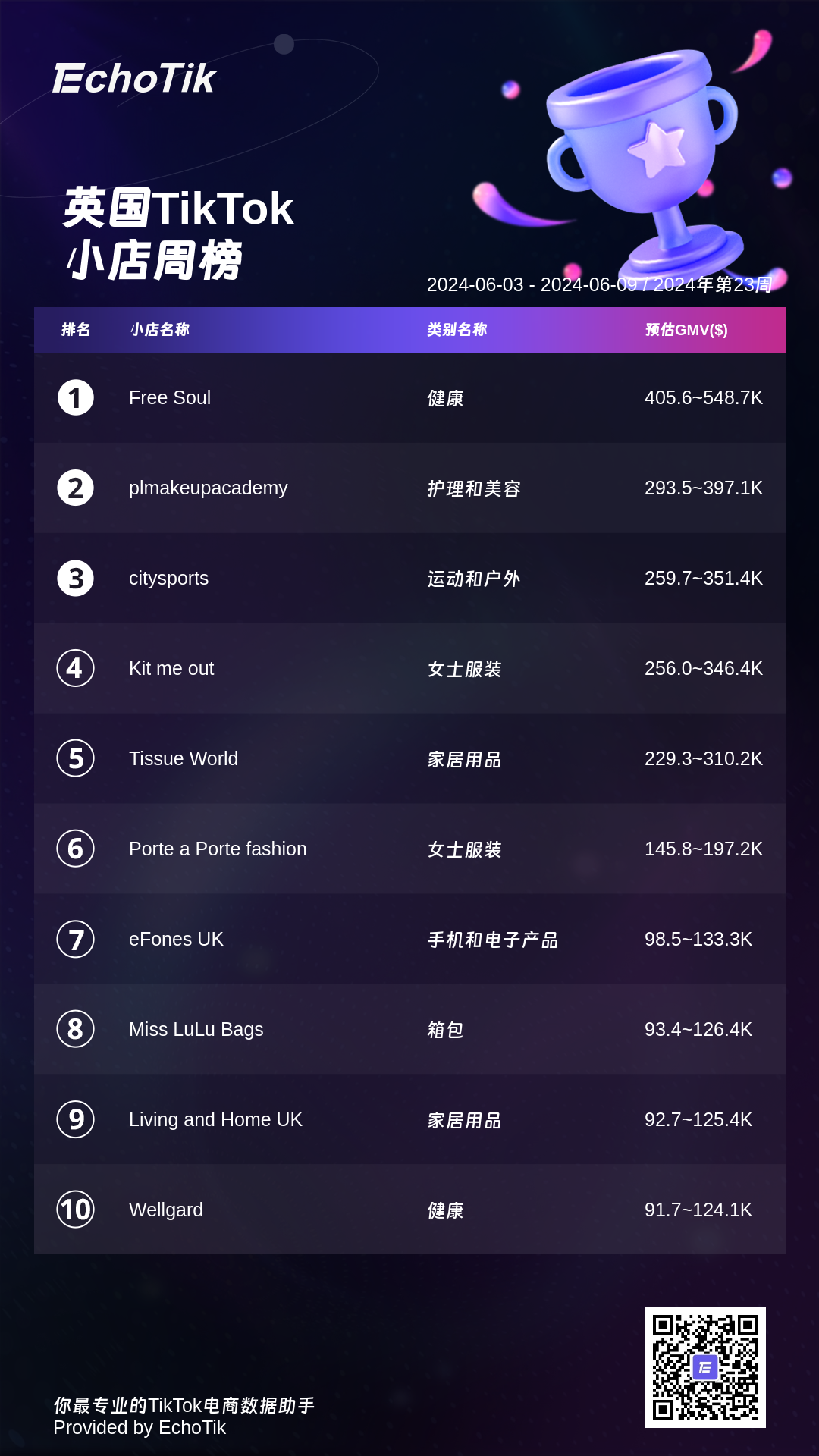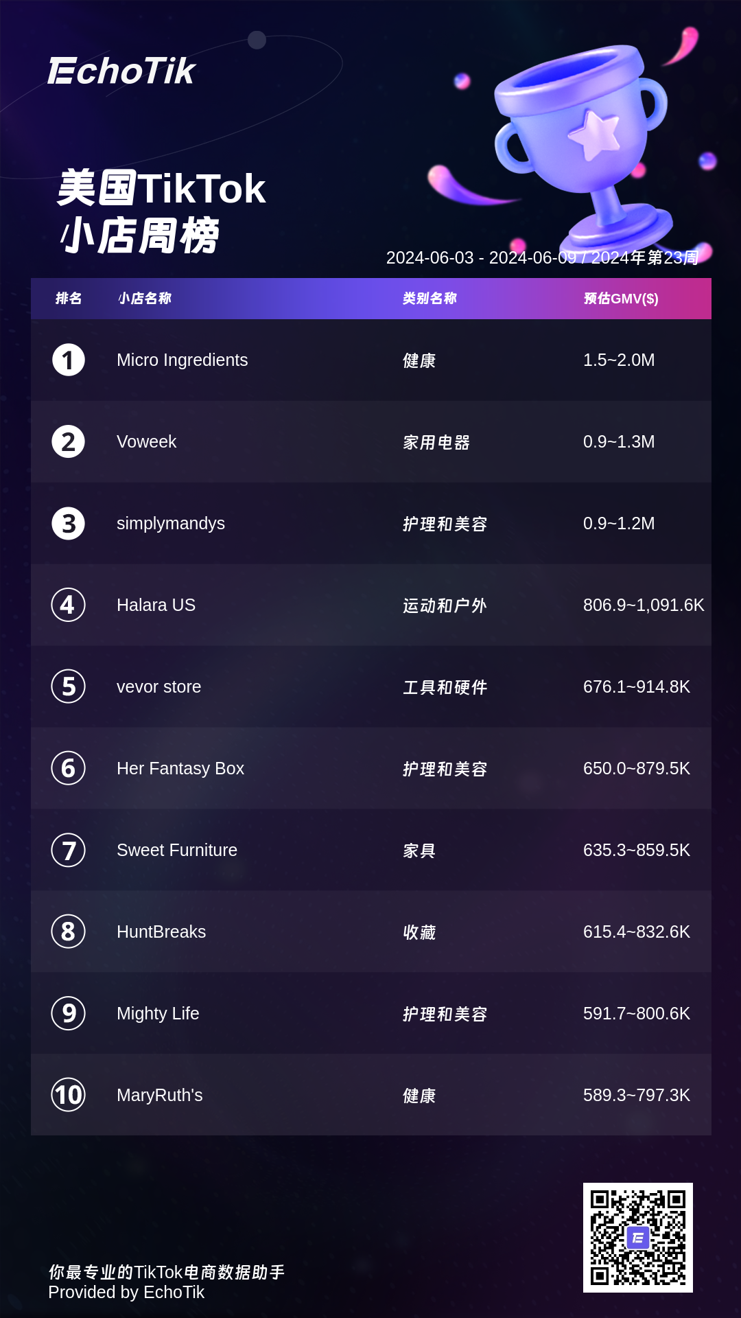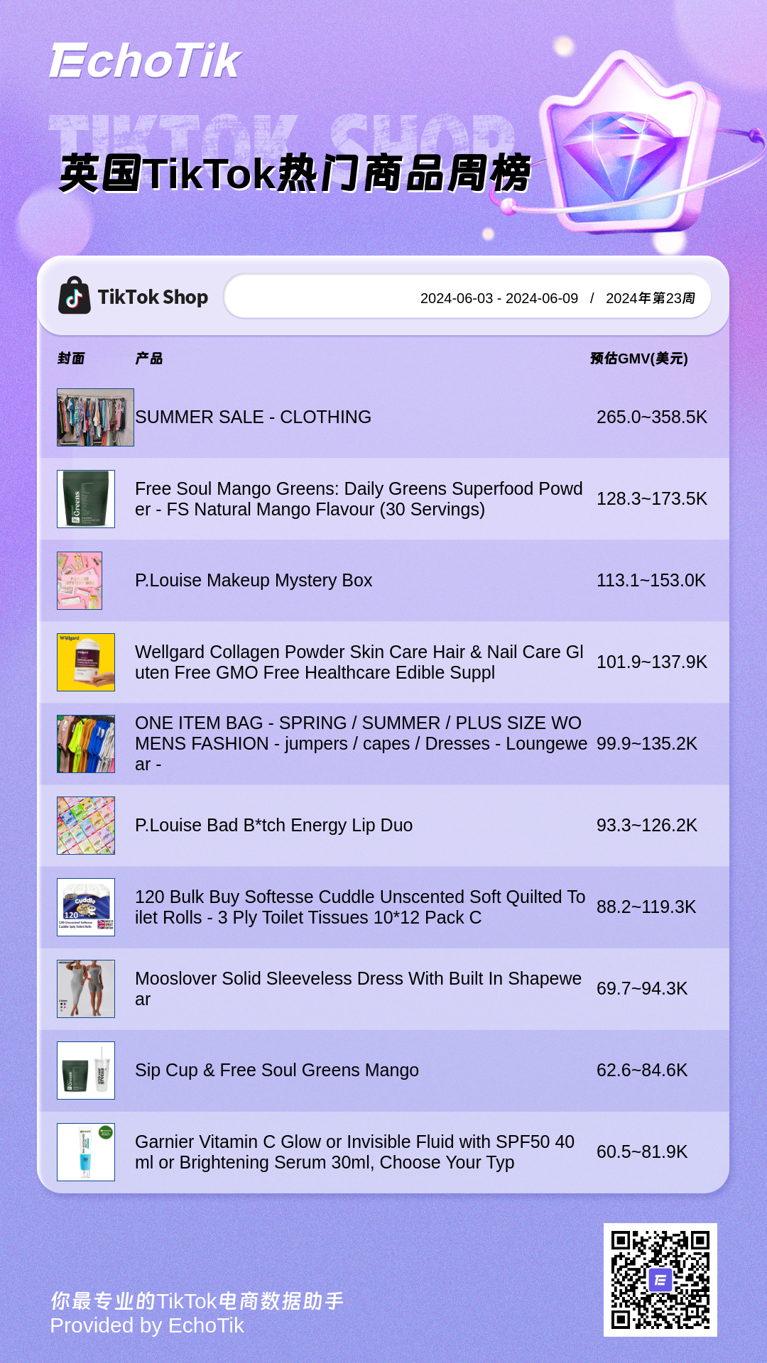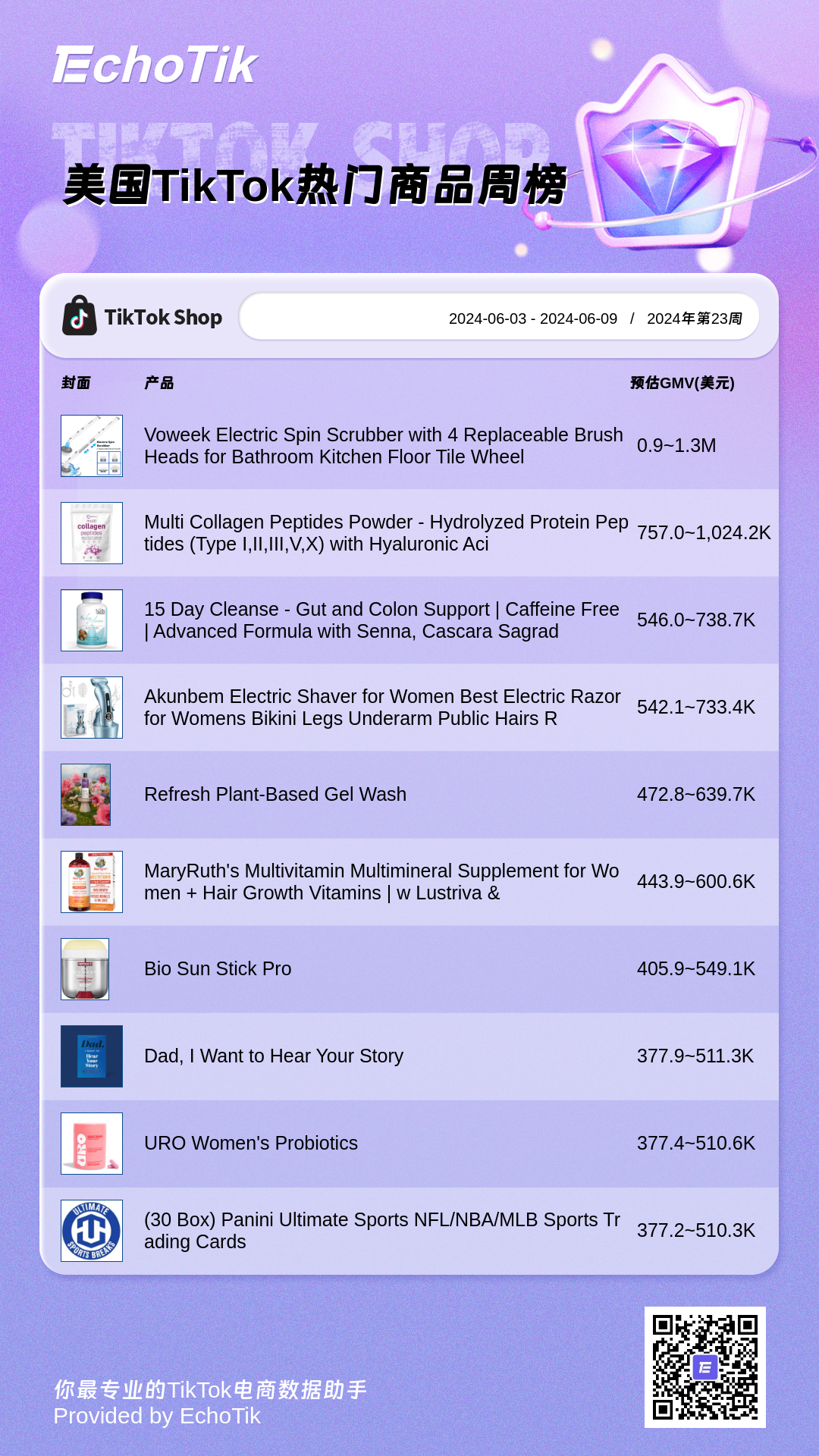 最新2024年6/3-6/9日TikTok Shop 热门周榜集合