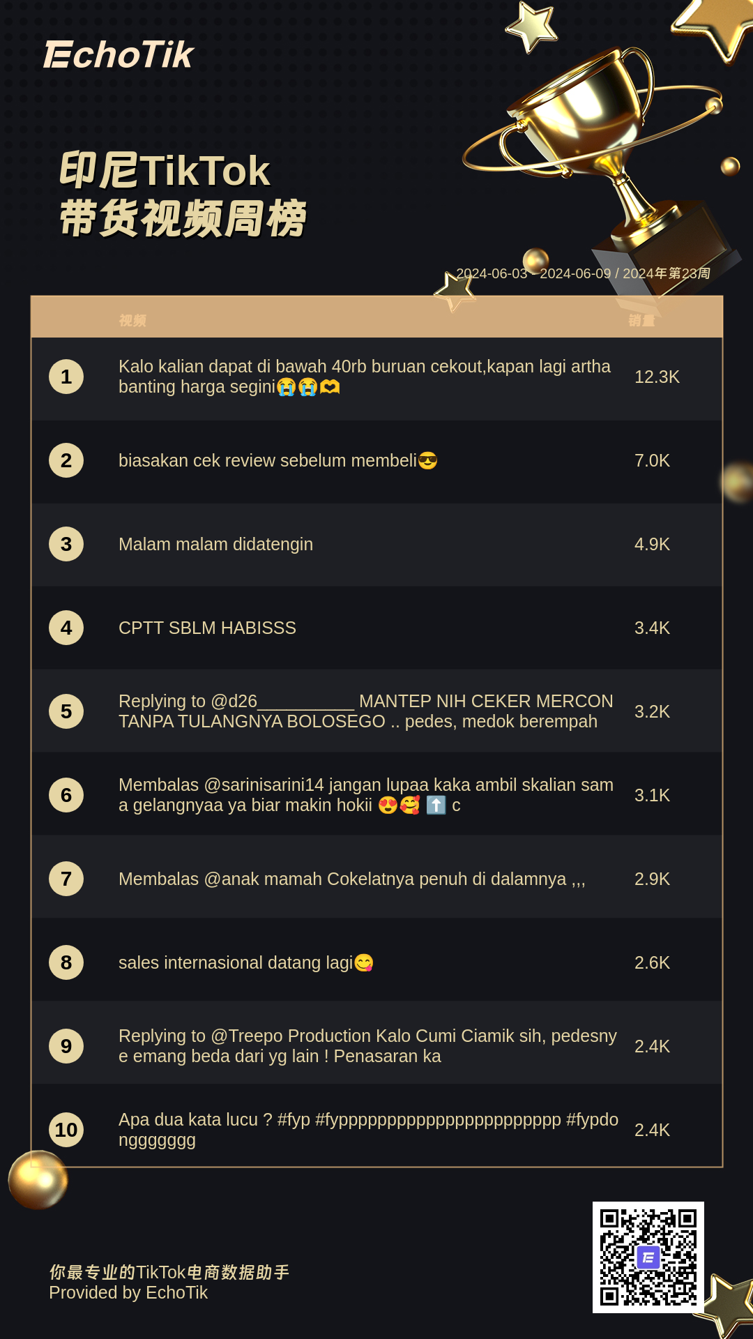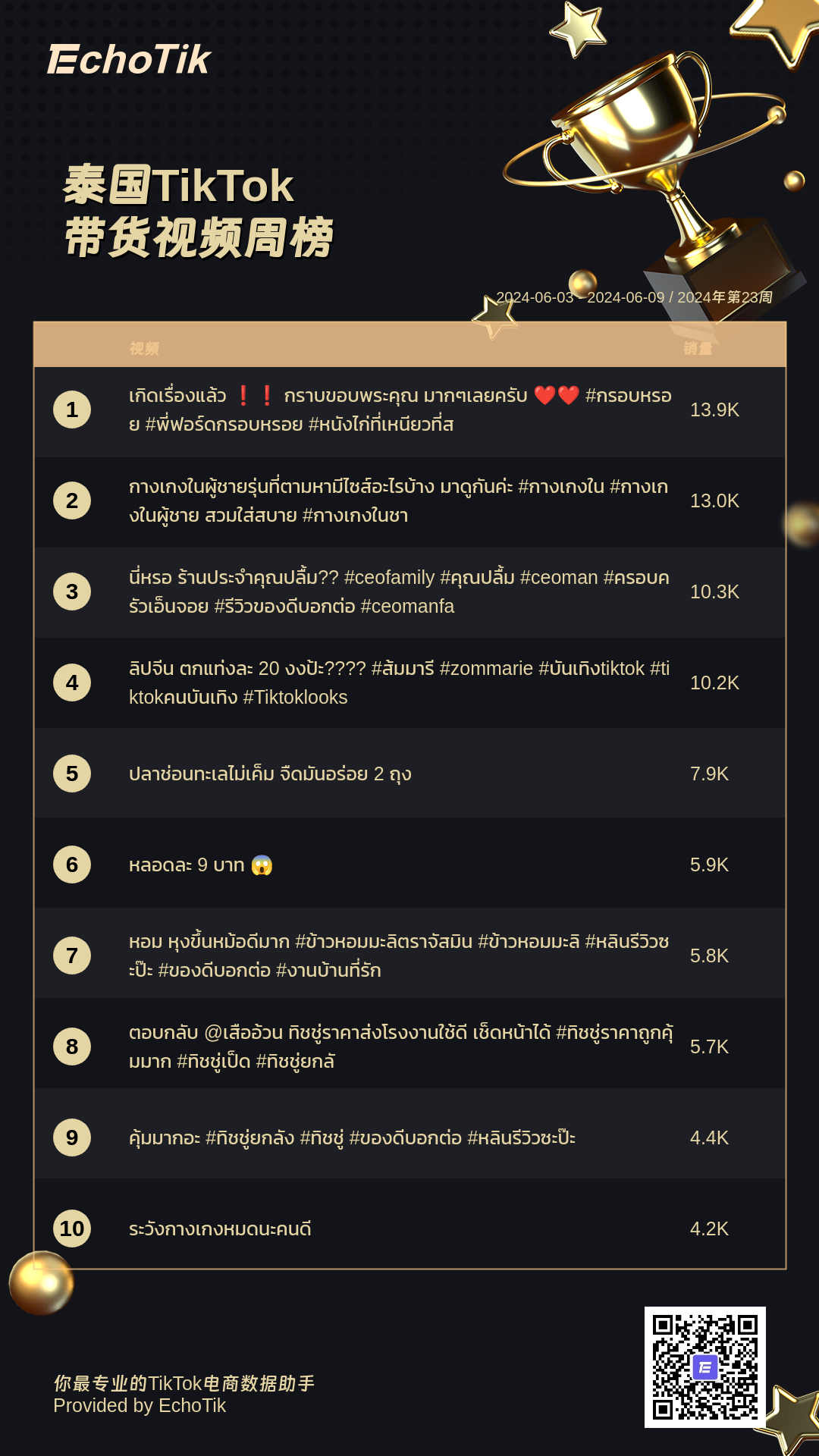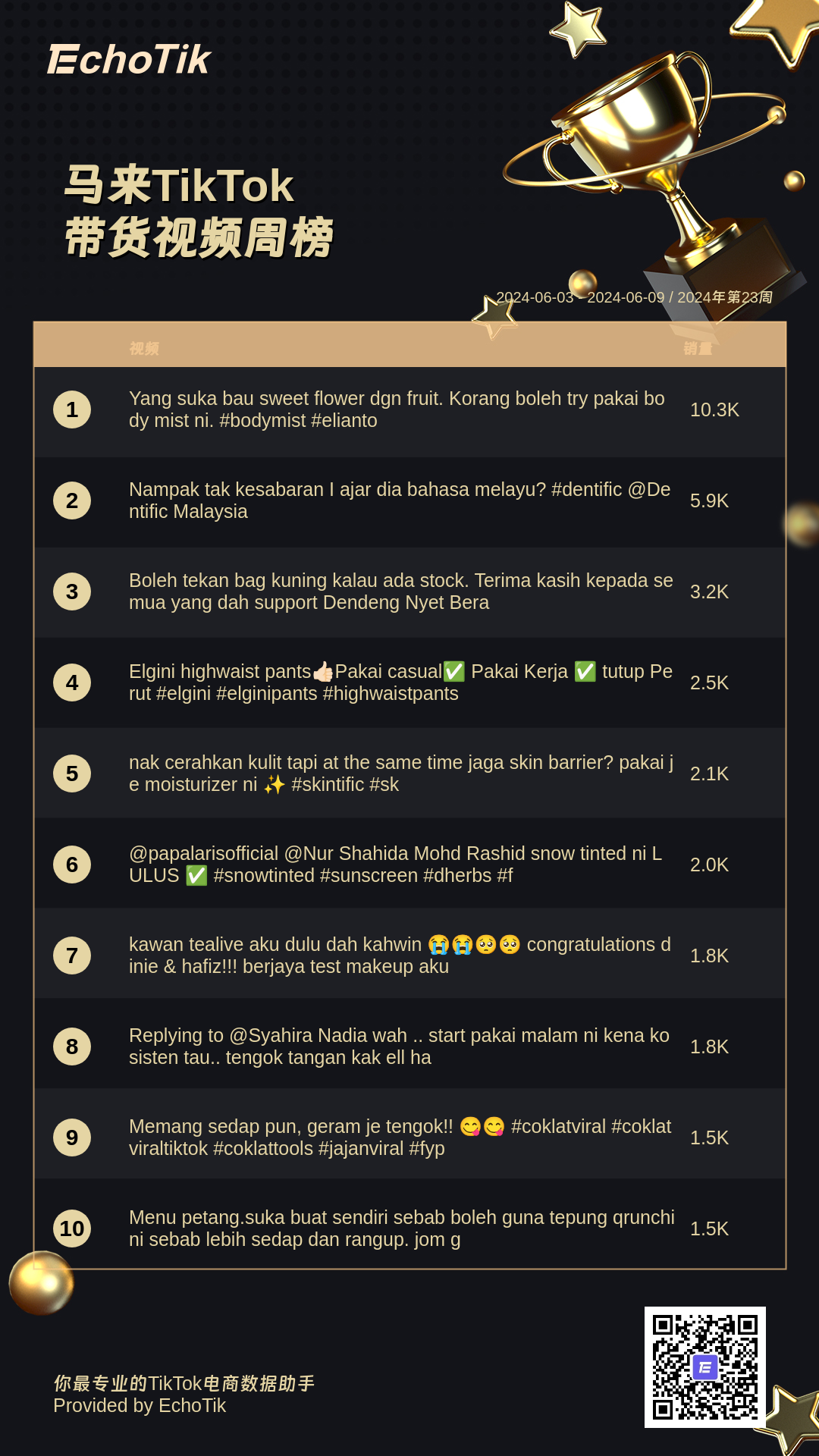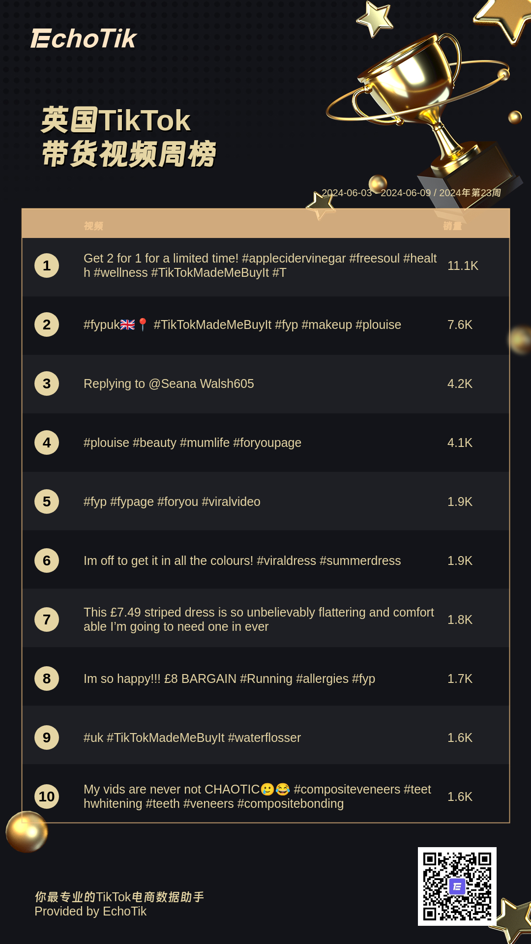 最新2024年6/3-6/9日TikTok Shop 热门周榜集合