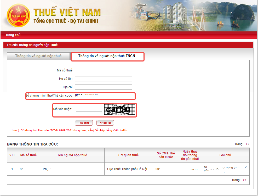 步骤 2:输入您的个人身份证号码以搜索您注册的现有税码
