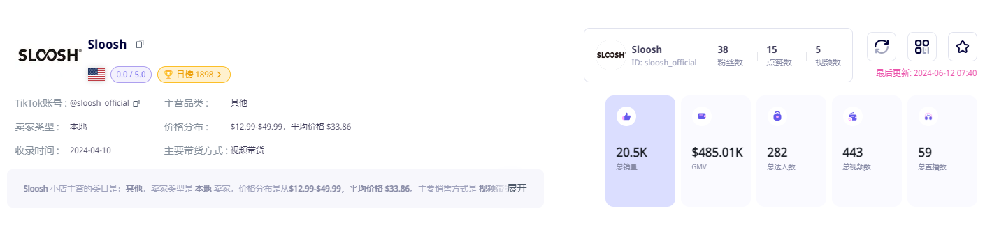 为什么这款充气泳池能引爆潮流? 在设计方面,这款充气游泳池颜色鲜艳,设计简约,还配备有杯架,方便用户在享受阳光浴时畅饮。而且其大尺寸适合家庭泳池、庭院或露台使用,便捷的充气设计还解决了收纳问题,并且售价仅为20.16美元。 如此多的因素,促成了它爆火的潜质。 在运营策略方面,@Sloosh主要通过达人短视频来带货。数据显示,该店铺的销售中,84.01%来自于达人带货,合作的达人超过282人,总视频数超过443个,并参与了59场直播带货活动。这些带货达人主要集中在数万至数十万粉丝区间,其中几位百万级别的网红也参与其中。