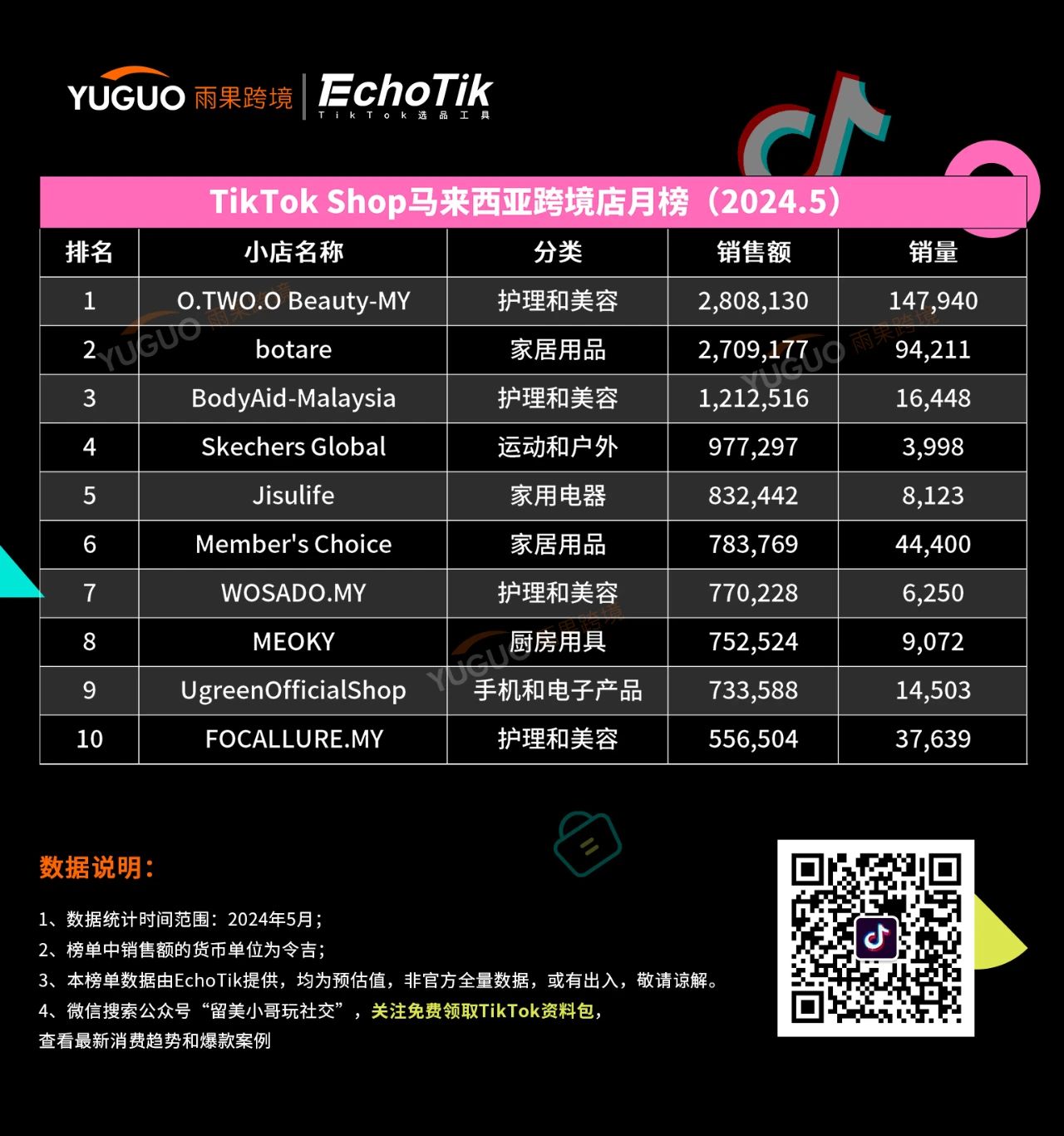 榜单排名第一的跨境小店 @O.TWO.O Beauty-PH 主营“护理美容”类目,主要带货模式为视频带货,月销售额约达 2.81M 令吉,销量 147.9K。