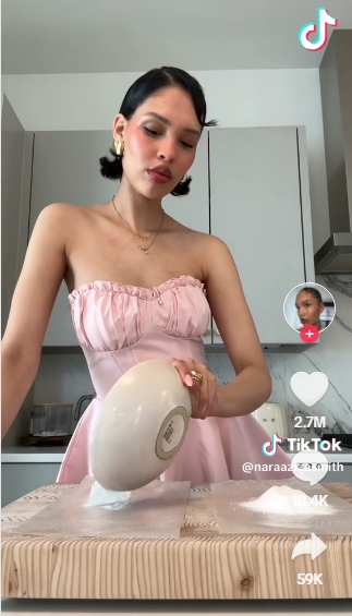 Smith is a mixed-race professional model who lives in the US. She has created an aesthetic wearing lavish gowns and jewelry while she makes her food.