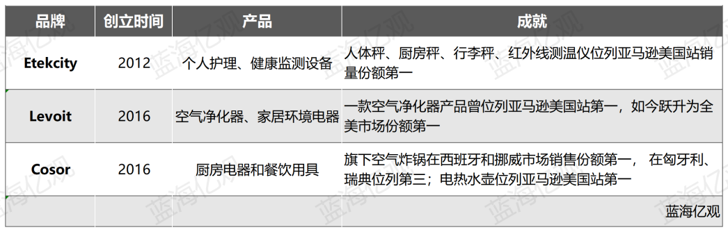VeSync的创始人杨琳,在创业之初就盯准了小家电这一细分方向,围绕着个人健康及护理(Etekcity)、家居环境(Levoit)和厨房(Cosor)三个场景,分别推出三个品牌。