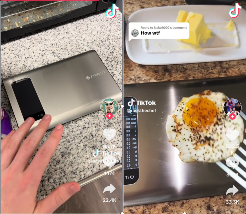 目前,最值得注意的是VeSync在TikTok上的动向。 VeSync在这个新平台上比较低调,但已经静悄悄地搞出了一个小爆款。 Etekcity旗下的一款食品营养称(显示重量以及热量等)在TikTok美区的销量超过了9.93万件,预估销售额超过355万美金。