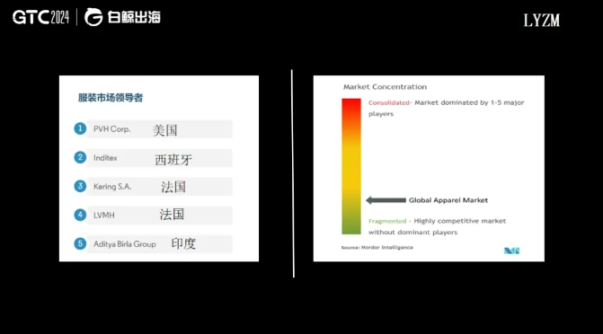 大霞女士凭借自身在跨境电商领域的丰富经验,深入分析了欧美市场中高端女装的现状和市场潜力。她指出,预计 2024 年服装市场规模将达 1.36 万亿美元,到 2029 年将增至 1.78 万亿,年复合增长率为 5%。亚太增速最快,得益于政府支持,而欧洲为最大市场。全球服装市场呈现金字塔结构,从价值市场到高端定制,各层级品牌互相影响。例如,Zara 以快速市场响应获得大份额,开云集团则以奢侈品市场定位取得成功。