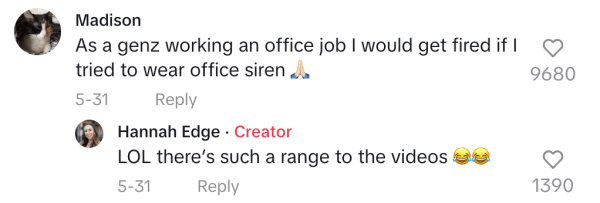 Many TikTok users have gone on to accuse the ‘office siren’ aesthetic of being delusionally inappropriate for any office setting. Some women even feel a sense of anxiety — valid or not — about how the office siren trend could exacerbate harassment.