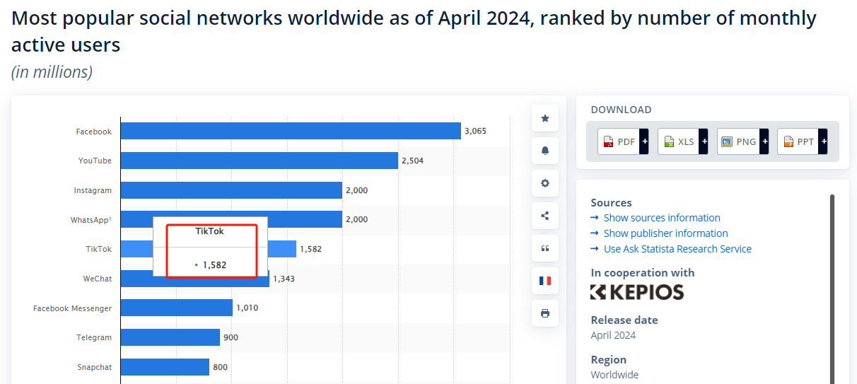 TikTok全球下载量 图源:Statista