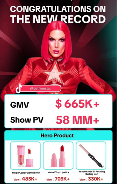 美容个护商品在@Jeffree Star直播间大卖 图源:TikTok