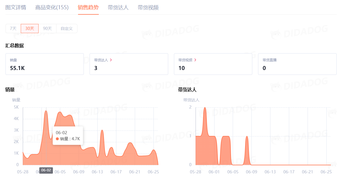 在过去的一月内,6月2日当天卖出4700单,6月5日卖出4600单,月销售量达到5.5万单,销售额为68.7万美元。