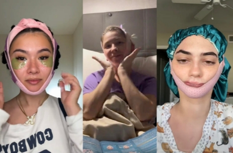Experts weigh in on the TikTok trend of sleeping in a chin strap. (Mikealla Wegner/Kimberly Pugh/Kerri Rosenthal via TikTok)