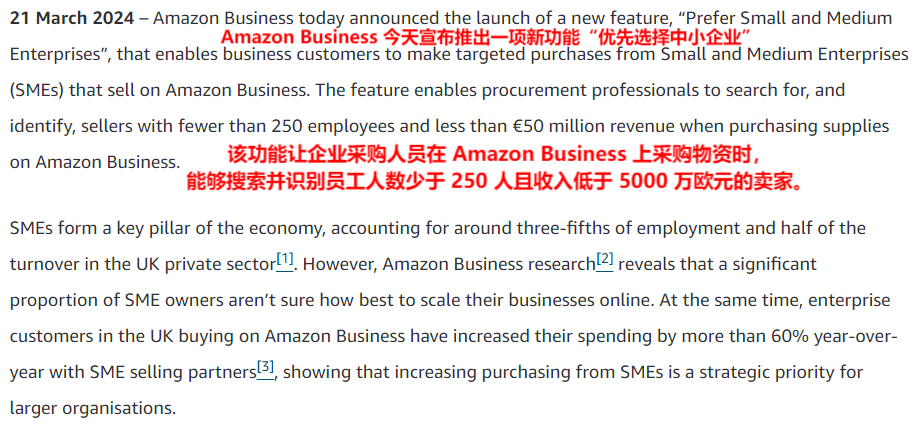 Amazon Business推出“优先选择中小企业”功能 图源:press.aboutamazon