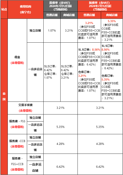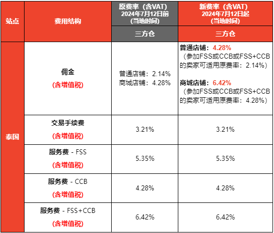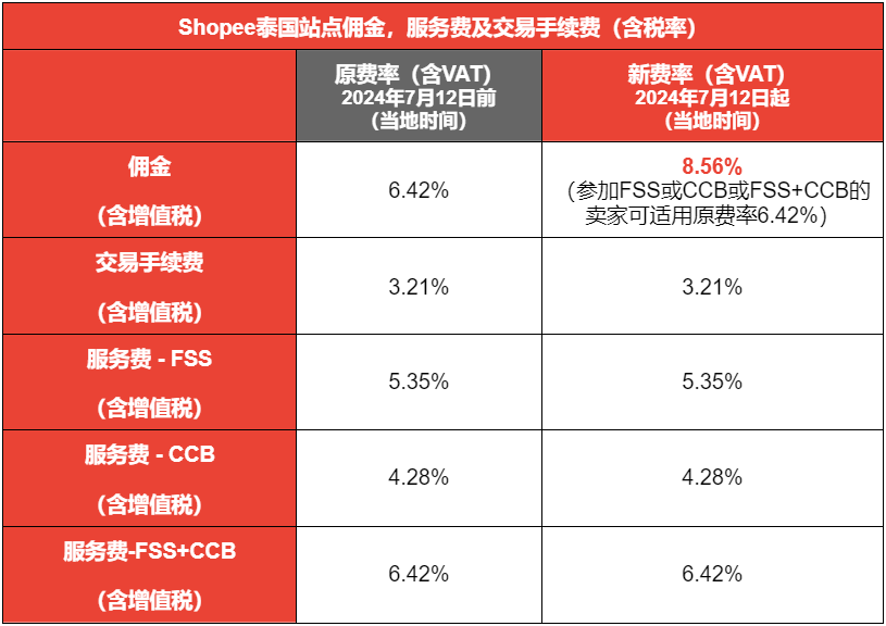 6月28日消息,为激励跨境卖家持续优化提升购物体验,平台将进一步扶持参与FSS(免运活动)和CCB(返现活动)的卖家,以提供更优质的买家体验。2024年7月12日(当地时间)起Shopee泰国站点海外仓、三方仓和南宁仓的佣金费率将统一上调2.14%。同时,Shopee泰国站的佣金费率也将统一上调2.14%。其中,参与FSS(免运活动)或CCB(返现活动),以及同时参与FSS和CCB(FSS+CCB)的卖家可享更优惠的佣金费率。