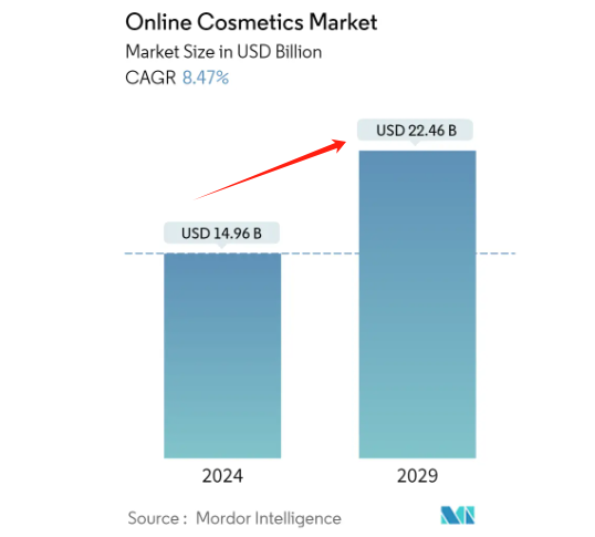 在线美妆产品市场规模 图源:Mordor Intelligence