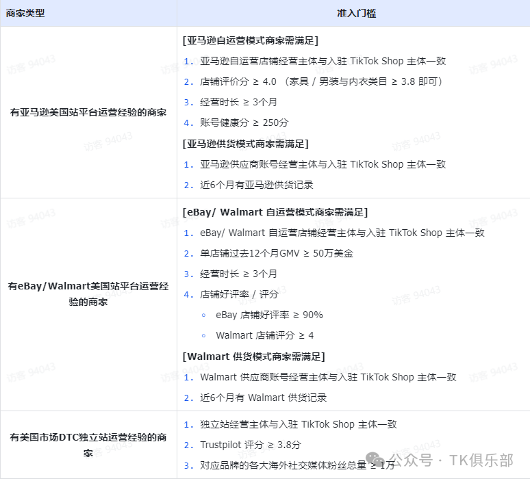 如您是中国内地主体和中国香港主体商家 针对开店主体为中国内地主体和中国香港主体, 且具有美国本地仓储物流能力的商家 (目前不支持中国发货,这是官方原话,虽然tiktok shop pop跨境店后台能设置中国仓库,但是不能设置运费模板) 需符合以下各大类门槛: