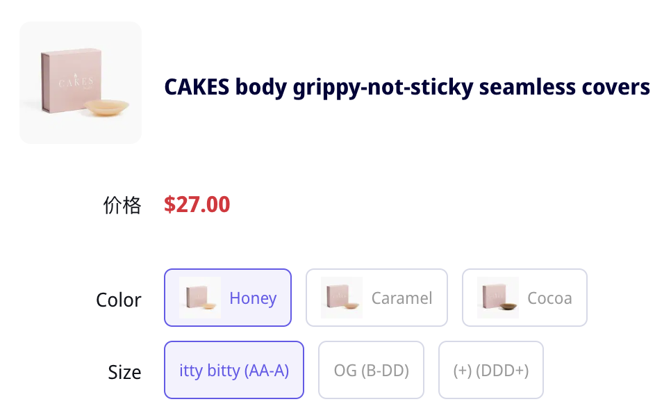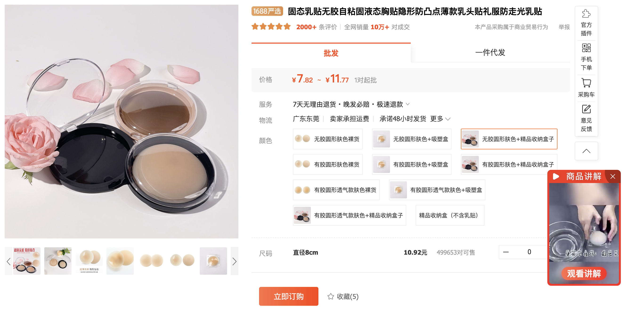 该商品有3种颜色和3种尺寸,适用于多种肤色和体型大小,细心的设计充分体现了对女性身体的尊重,也是这个商品能在短期内成为爆款的原因之一。