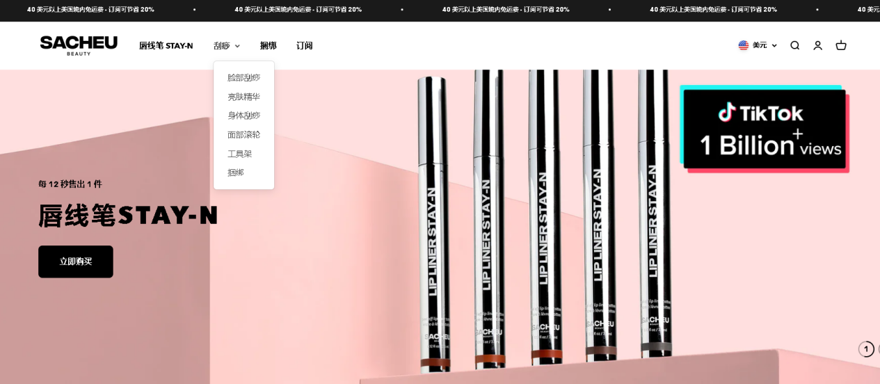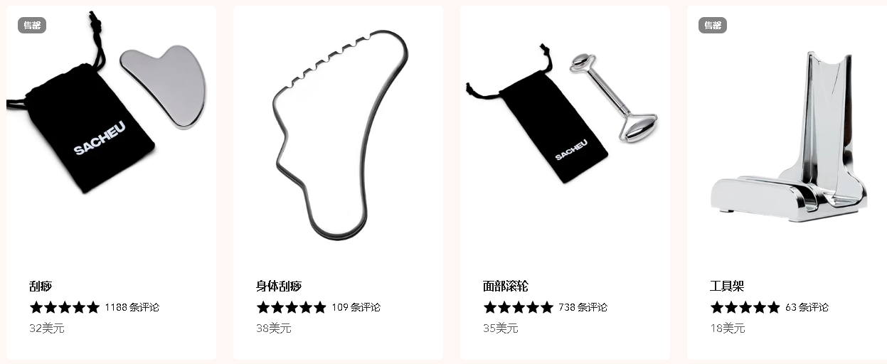 基于产品本身的质量和使用效果、品牌在 TikTok 等社交媒体平台上成功的营销策略,以及创始人 Sarah Cheung 的个人魅力和影响力,用户不仅对产品产生了信任感,还对品牌背后的故事和价值观产生了共鸣,这也为品牌带来了大量忠实粉丝和良好的口碑,SACHEU Beauty 也因此成功地在竞争激烈的美妆市场中站稳了脚跟。除了“Lip Liner Stay 唇线笔”外,SACHEU Beauty 店内亮肤精华、面部刮痧、面部滚轮等多款美妆产品也深受消费者喜爱。03