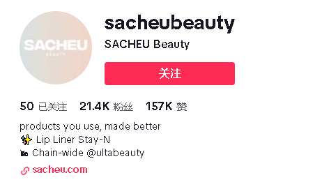 作为一位热爱分享美妆心得的 KOL,Sarah 在 TikTok 、Instagram 等平台上巧妙利用自身美妆达人身份,持续为 SACHEU Beauty 产品进行种草营销,Sarah 在社交媒体上的影响力也为 SACHEU Beauty 在市场上的快速崛起奠定了坚实的基础。目前,SACHEU Beauty 产品销售范围覆盖独立站、 TikTok Shop、亚马逊、Ulta.com 以及全美 1362 家Ulta Beauty连锁店。02