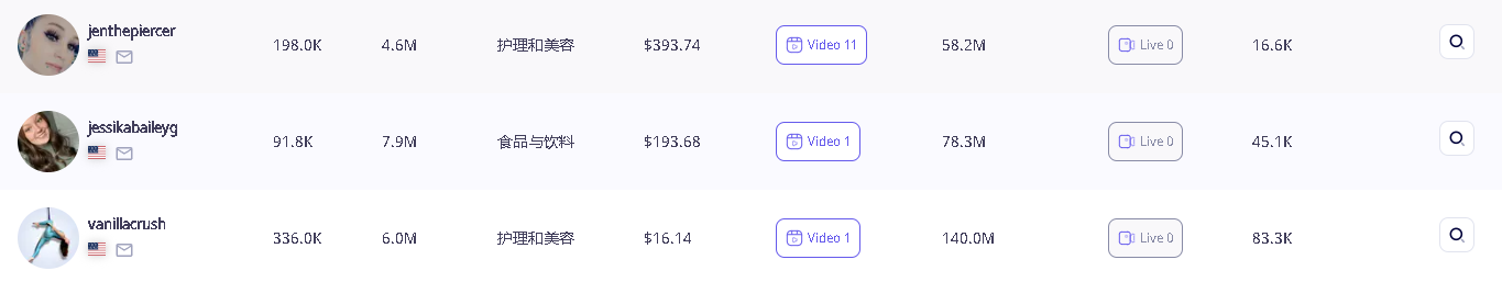 例如,拥有将近 20 万粉丝量的腰部达人 @jenthepiercer 通过与“Lip Liner Stay 唇线笔”合作的 11 条视频,成功带出了近 40 万美元的 GMV;粉丝量还不到 10 万的尾部达人 @jessikabaileyg 通过 1 条视频为其带来了将近 20 万美元的销售额。当然,品牌在其中有针对性地对达人视频进行投流也为视频曝光量增加发挥了不少作用。