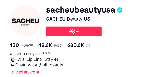 在布局 TikTok 美区小店的同时,SACHEU Beauty 也同步在 TikTok 开通了针对美国市场的矩阵账号@sacheubeautyusa。