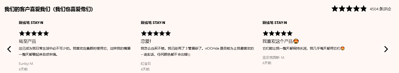 与此同时,在首页各版块穿插进已购买用户留下的评论,也成了 SACHEU Beauty 独立站吸引用户下单的手段之一,通过其他消费者对店铺产品、服务态度等方面的评价为新进入的消费者提供了更多关于产品的信息,让消费者对产品产生信任,从而快速做出购买决策。