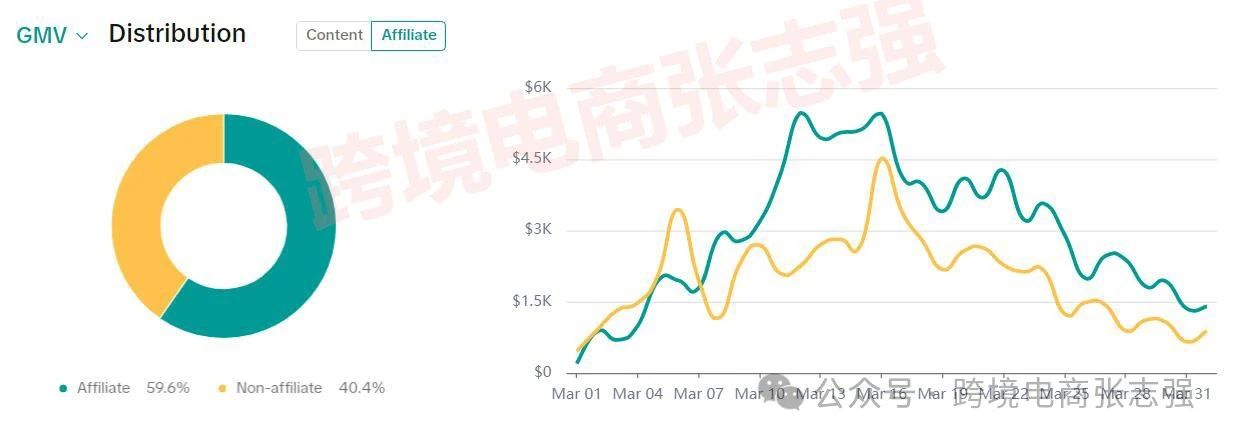 Affiliate出单:如图占比59.6%这个就是目前卖家最主流的出单方式达人带货。从店铺运营的角度来说主要分为两点,其一是我们把产品设置好店铺计划设置好产品分佣,有些达人会主动帮你卖。其二是最为重要的,需要我们主动出击,主动联系很多达人网红,这里也是个最大的难点,我们花了很大的功夫做这件事,中间也走了很多弯路,终于攻克了这个难关。有需要的卖家也可以私信我,现在资源比较富余。