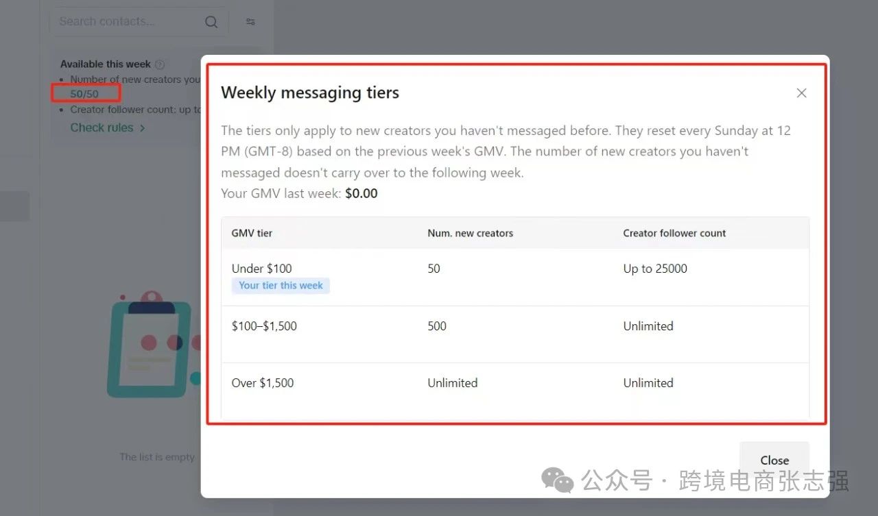 这个规定出来后,对于新进来的卖家就不友好了,新店铺刚开始都没销售额,那么一周GMV在一百美金以下的只能一周发50封私信。按我经验来说发50条私信很可能没一条回复!那这里就会是一个死循环,越是没有出单就越不能寻找达人带货。所以在我看来目前咱们最大的运营难点在于找达人(对于自己不做视频内容的卖家来说)好那么剩下找达人的渠道就是多刷视频寻找主页有联系方式的网红了,通过邮箱, whatsapp Ins 或者tiktok私信这些了。这里需要花大量的功夫!我们发现寻找达人需要投入资金,就像做亚马逊测评已经成了一项固定的开支,尤其是产品想快速启动,就需要花钱买时间了。
