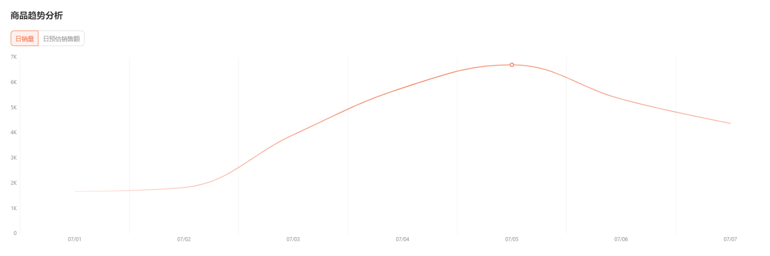 数据显示,该产品的佣金比例为 12%,近 7 天单日销量最高达 6700 件,最低 1200 件,关联视频达 61 条,关联直播达 237 场,目前单品总销量已高达 5.78 万件,总销售额超百万美元。