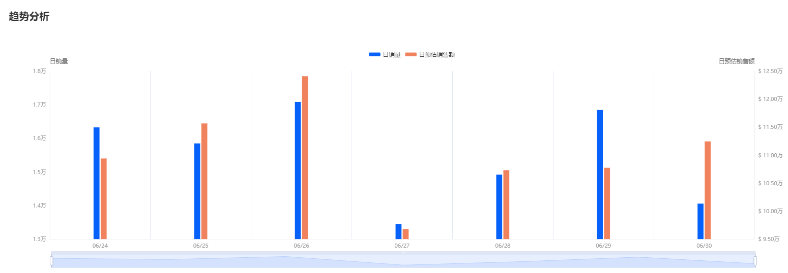 该产品目前在店内的售价为 15 美元,近七天共计卖出 1.27 万件。目前产品累计总销量已达 5.91 万件,单品销售额达到 90.3 万美元。