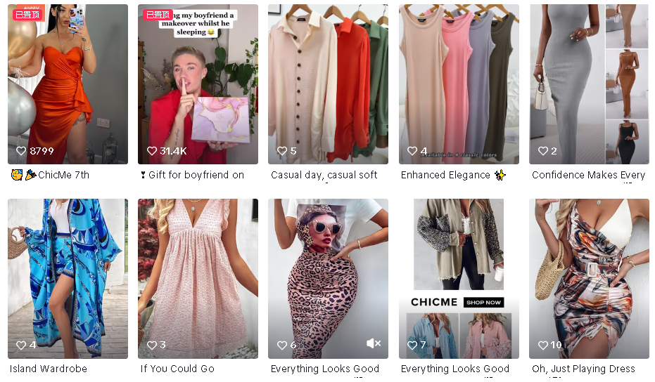 在 TikTok 上,ChicMe 账号发布的视频内容主要包括产品展示、穿搭教程等,轻松活泼的风格搭配上动感的背景音乐,让这些靓丽的各式女装变得格外吸引眼球,虽然 ChicMe 在 TikTok 上的矩阵账号整体播放量并不高,但借助达人的影响力 ChicMe 仍旧有效触达了更广泛的目标群体,并提升了品牌在年轻消费者中的影响力,快速带动产品销量实现了增长。