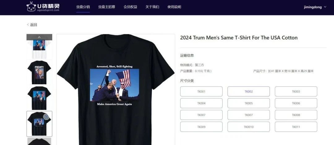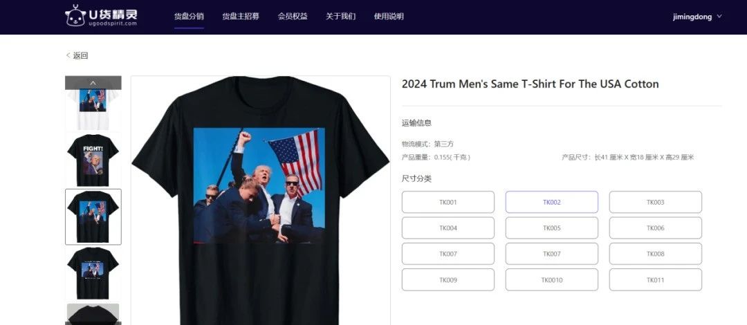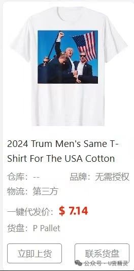 100%利润的特朗普T恤,U货7.14$支持全美定制一件代发