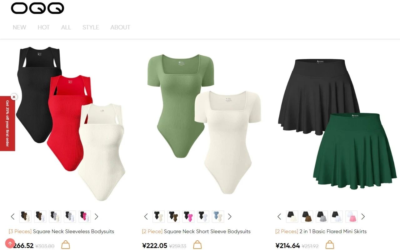 先来简单介绍一下,OQQ来自浙江杭州,其品牌设计注重简约和极简主义,致力于打造实用、优质、可持续的时尚单品,集时尚性、功能性和实用性于一体。据相关数据显示,OQQ过去半年销量达到66.27万件,GMV超过1506.92万美金,折合人民币上亿元。