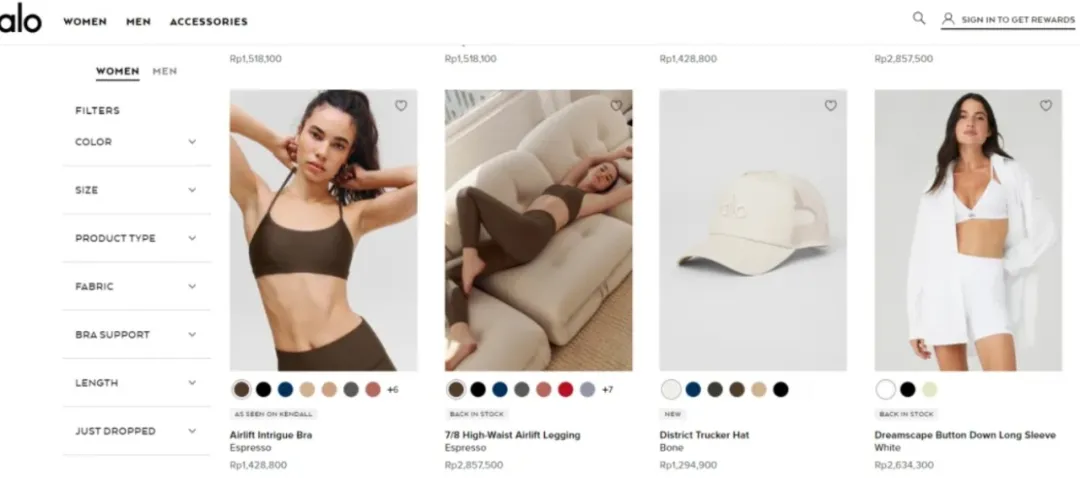 Alo Yoga部分产品展示 图源:Alo Yoga官网