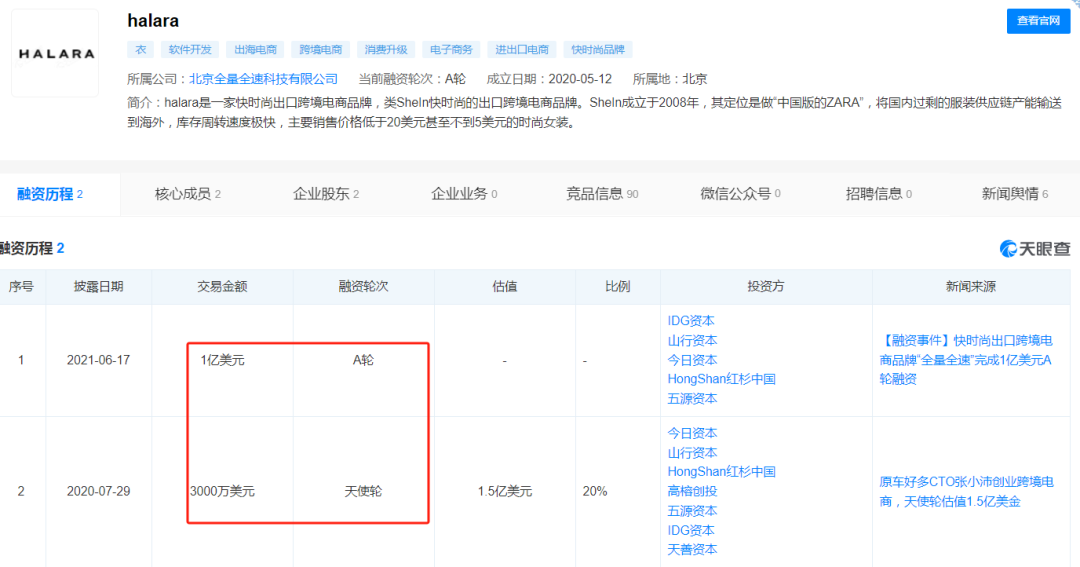 Halara拿下上亿融资 图源:天眼查