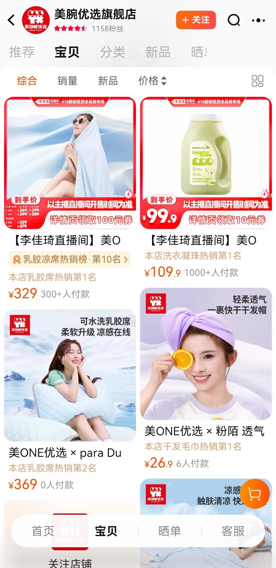 李佳琦背后直播电商运营公司美腕,最近正式推出了自有品牌“美腕优选”,并开通了天猫旗舰店。店铺粉丝量超1000,上架商品中仅洗衣凝珠已售超1000,乳胶席销量过百,其他商品几乎没有销量。 对于新品牌初试,美腕合伙人李佳琦在直播中表示,“很多大家熟悉的国际大牌,都是中国制造,来自中国工厂。这些工厂,可以说是很多品牌背后的‘英雄’,我们希望把这些隐藏在背后的优质商品都集合到美腕优选天猫旗舰店,带给大家。”