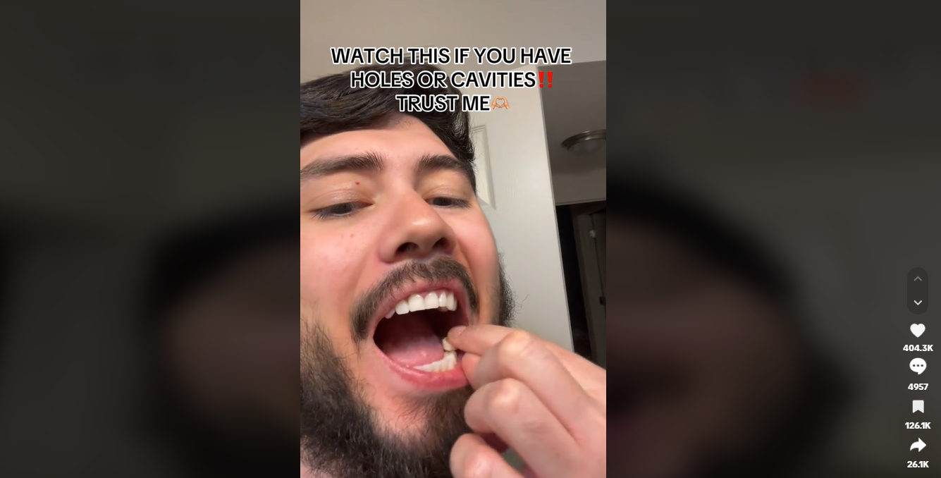 TikTok上一位“@artificialaicreations”博主在5月31日时发布了一段视频,向网友展示牙齿在咀嚼白色“小药片”之后变得亮白。 视频中,博主向网友展示自己未咀嚼前牙齿的颜色和蛀牙虫洞,然后拿出这个白色“小药片”塞到蛀牙的地方并咀嚼成粉末,随后展示自己洁白的牙齿和使用两个多星期的真实感受。