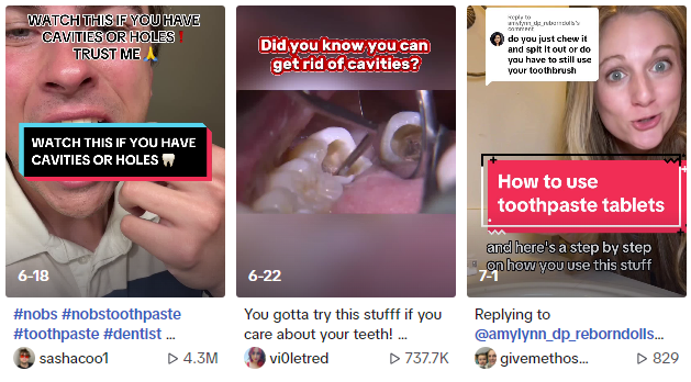 随即,越来越多使用NOBS牙膏片的用户在社交媒体上分享效果,这也让NOBS牙膏片迅速在TikTok等多平台走红。
