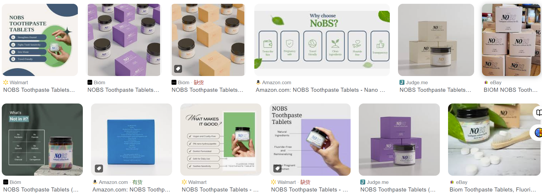 随着消费者及红人在社交媒体上分享,NOBS牙膏片的影响力不断扩大,销量持续上涨。据Shoptop观察发现,除了在TikTok shop上售卖外,NOBS牙膏片在亚马逊、沃尔玛、eBay等第三方线上平台售出,销量持续火热,甚至售罄缺货。