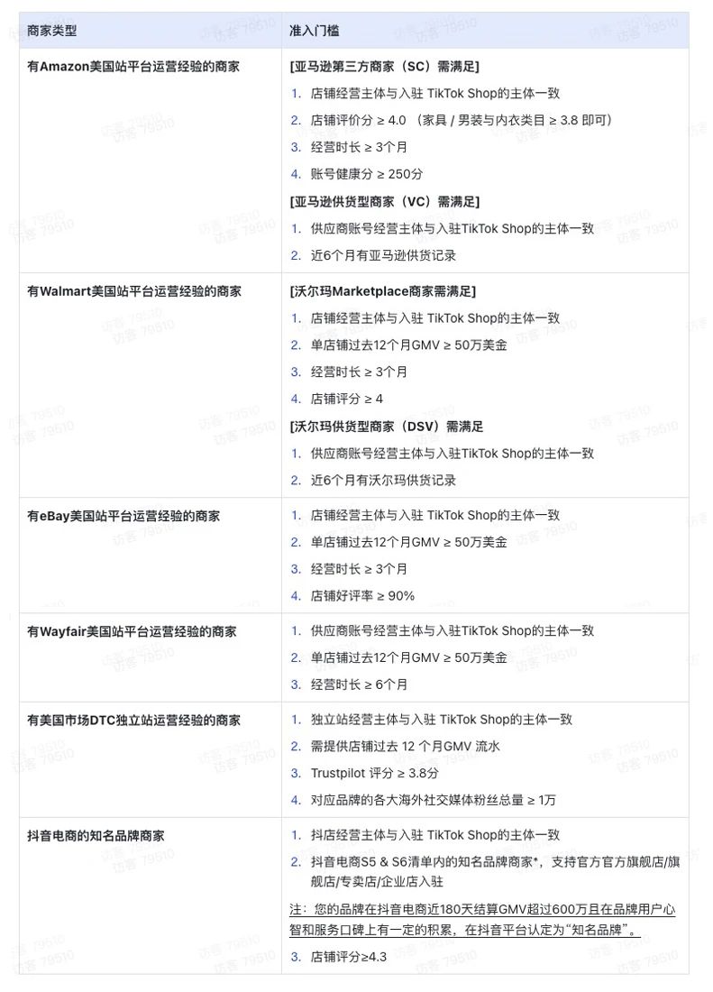 然后还是会从资质部分做区分,开店主体为内地主体和香港主体,同时具有美区本土仓储和物流能力的卖家。需要满足以下表格条件。