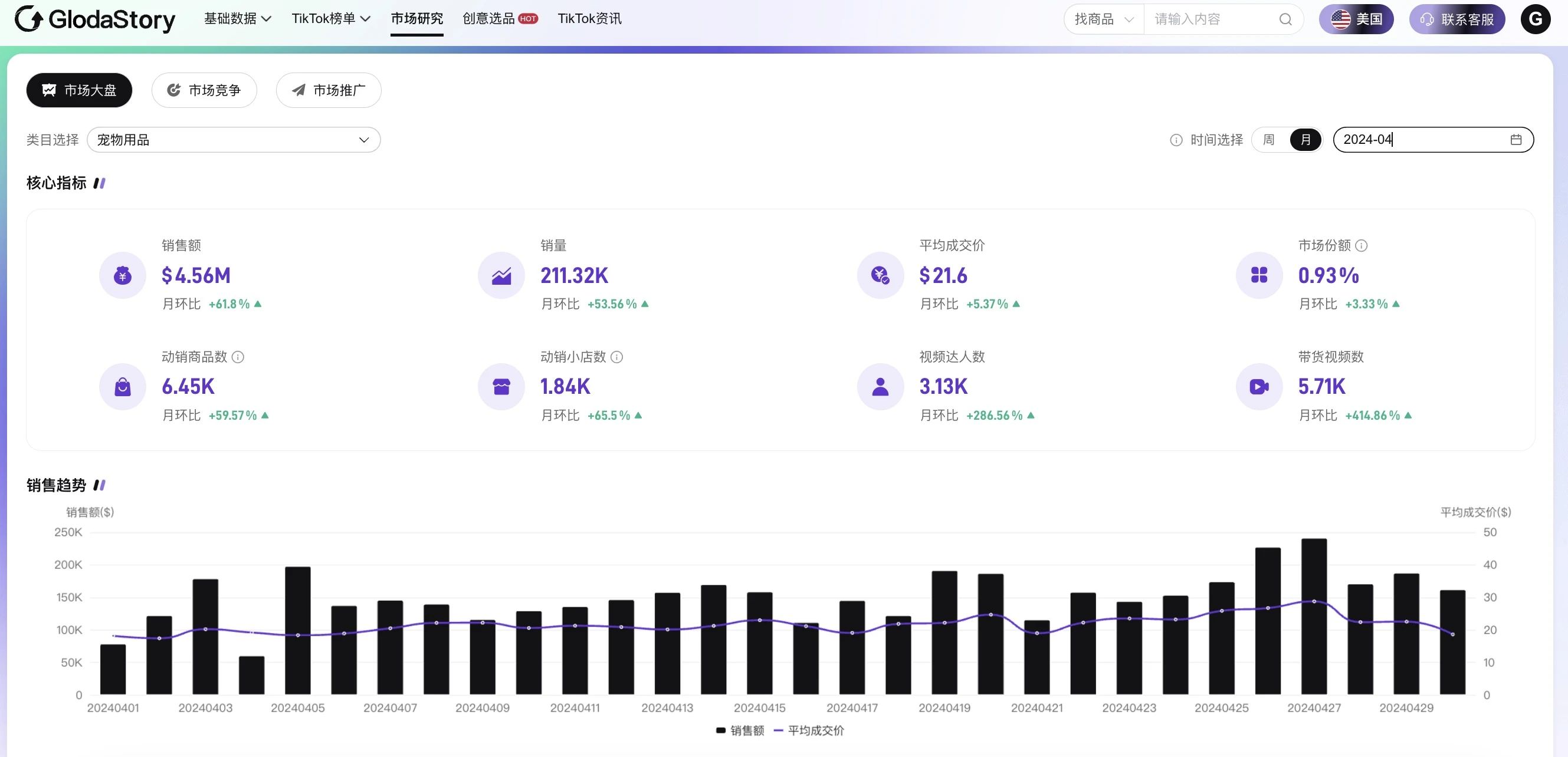 近年来,随着宠物经济的崛起,宠物用品行业逐渐成为市场热点。TikTok作为全球知名的短视频平台,其美区市场也为宠物用品行业带来了全新的机遇和挑战。本文将基于GlodaStory独家的TikTok美区宠物用品行业趋势分析报告,为您揭示宠物市场的未来脉搏。