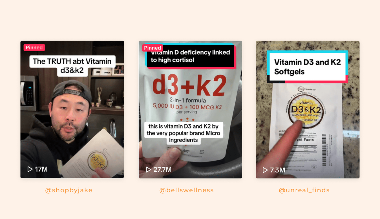如今,随着TikTok带来的“病毒式传播流量”,Micro Ingredients已跻身D3+K2维生素同类产品的第一品牌梯队,占有整个市场份额的10%,月度销售额销售额与2023年同期相比高出4-5倍。