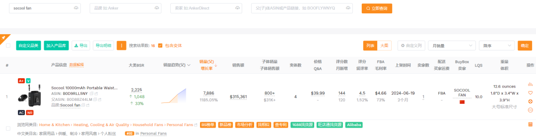 通过卖家精灵可以看到,这款产品拥有73%的毛利率,整体销售趋势正在大幅度上升之中。