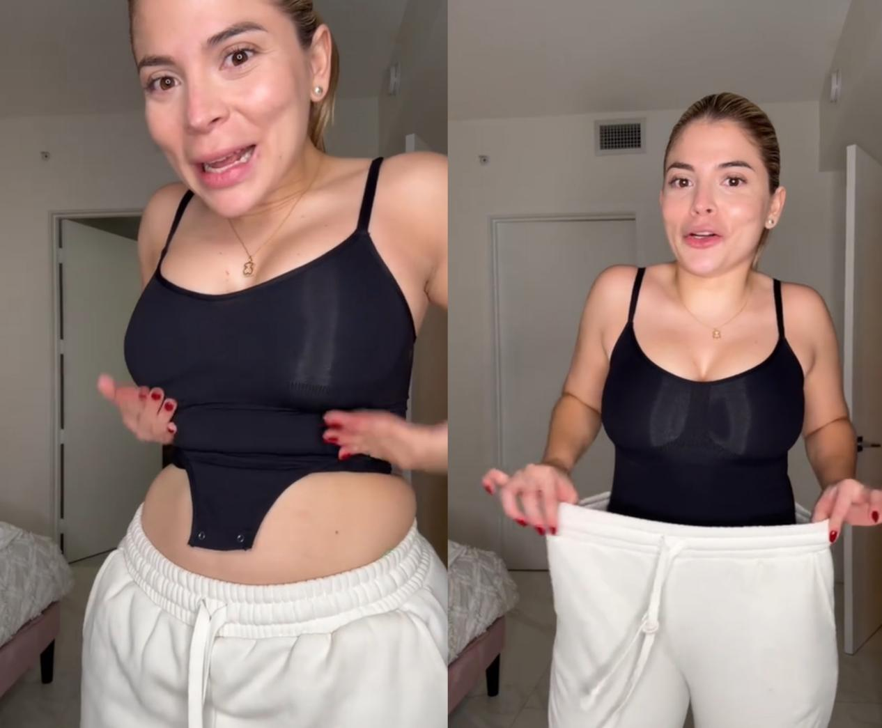 FeelinGirl的卖点还在于“360度无缝”,使用拉伸度很强的亲肤面料,制作出来的衣服无缝并且重量很轻,可以跟其他衣服一起搭配,可以在运动时候穿着,或者当正装的打底,使用场景非常丰富;不含任何的钢骨或者钢丝,不会对身体造成伤害;采用开裆设计,可以正常上厕所,不用脱掉所有的衣服。 只追求舒适度是不够,塑身衣必须要有好的塑形效果。 所以一些需要重点提拉的位置就要格外注意,比如臀部,FeelinGirl采用网眼设计来增强臀部曲线;为了突显腰部曲线,采用高腰的设计,给腰部提供更强的支持力。 FeelinGirl跟很多TikTok达人合作,在达人@nathaliarivera的视频中,她先是展示了为未穿塑身衣的身材,然后展示穿上塑身衣的身材,效果非常明显。因为在穿前穿后,她身穿同一条白色运动裤,本来穿起来很艰难的白色运动裤,在穿上塑身衣之后马上变得空空荡荡的、甚至可以塞下两个她。