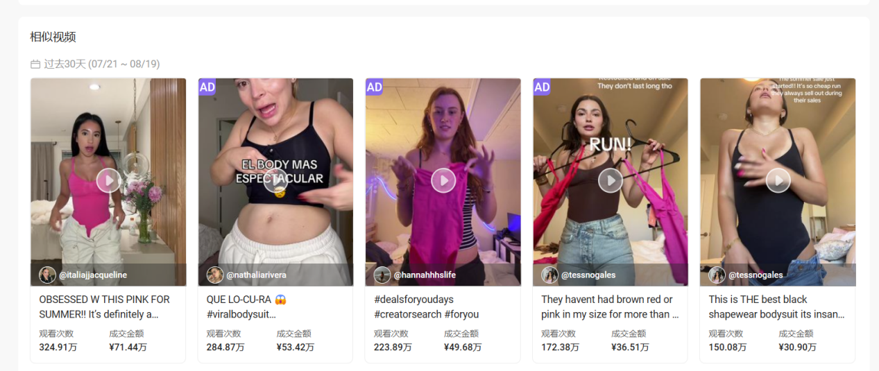 “女性力量”的力量。当代女性追求的美不是来自于潮流,而是来自于耳畔。 根据kalodata数据,有一款无缝连体塑形衣在TikTok上爆火,这款塑形衣来自中国品牌FeelinGirl,平均销售价为214.02元。近一个月,成交金额达到241.63万元。
