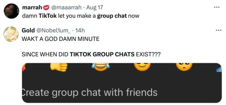 所以在我们看起来稀松平常,觉得“不就是个群聊而已”时,痴迷TikTok的美国老铁们都在激动地奔走相告,觉得是个历史时刻: