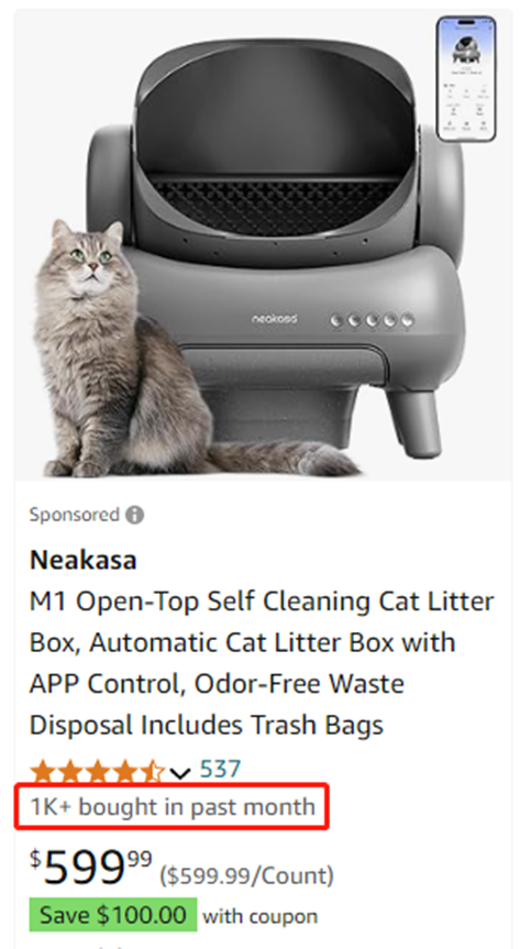 再之后,由于智能清洁赛道竞争较为激烈,有感于增长受阻的集海科技再度转变业务发展方向,开始进军宠物用品市场,先后在国内和海外市场推出了宠物理毛器Netabot与Netabot P1 Pro,后又正式推出了自有品牌“Neakasa”。 为了吸引更多消费者,该公司注重创新性和实用性,在产品打磨上下了大工夫,并成功打造出了多款爆品,销量节节攀高,一举成为了宠物类目的头部大卖。2023年,该公司旗下这款宠物理毛器Neakasa P1 Pro成为了美国市场相关垂类的“销冠”。在今年亚马逊的Prime Day大促中,该公司旗下一款Neakasa M1猫砂盘也取得了2400万元的GMV,不可谓不惊人。