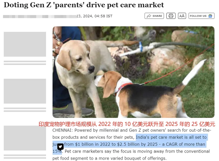 客观来说,近年来,随着全球范围内宠物饲养数量的不断攀升,消费者对宠物用品的需求也不断增加。同时由于生活水平的提高,当今消费者也对宠物的生活品质也越发重视,愿意为更多价钱购买高质量的宠物用品。因此,宠物用品市场如今是越发火热了。 有数据显示,早在2022年,全球宠物市场的规模就达到了2610亿美元。未来几年,这一市场的规模预计还将以6.1%的复合年增长率不断扩大。到了2027年时,全球宠物市场的规模将会达到3500亿美元。 在全球多个国家地区,宠物类目都涌现出了大量商机。比方说俄罗斯,根据电商平台Wildberries提供的数据,2023年该平台消费者对猫玩具、猫食品等宠物猫产品的需求暴涨了4—5倍。再比如说印度,该国印度宠物护理市场的规模预计将在2025年增长至25亿美元,复合年增长率高达15%。