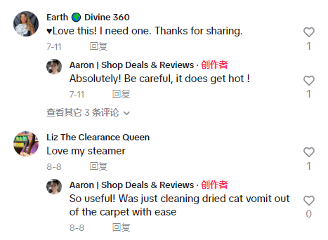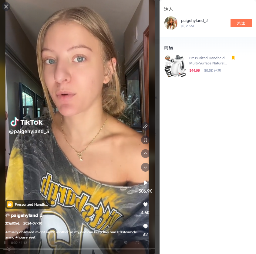 [mcv_dplayer source="https://img.tkfff.com/2024/08/8月23日.mp4" width="100%" height="500"] @paigehyland_3的视频在7.30发布,嘀嗒狗后台观察到这条视频目前有30.69万的播放量。博主通过功能介绍使用户对整体产品有大致了解,并结合实际使用场景增强了对用户的说服力。可以看到,这款工具真的只是利用高压蒸汽,就使一块年代久远的地砖变得十分干净! 评论区的观众纷纷表示这款产品真的很有用,感谢博主的分享。并且也有人说这款产品的清洁能力远超想象,甚至能把猫猫的呕吐物都清理的干干净净。