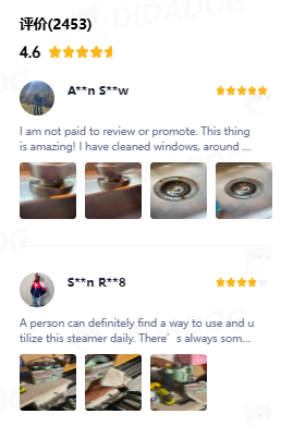 通过嘀嗒狗官网可以查看到商品的评分,目前该商品的整体评分为4.6分。可以看到每个用都对它的效果和泛用性赞不绝口:每个人都会有需要清洁的东西,选它就对了!